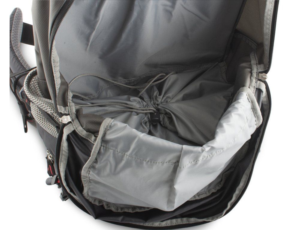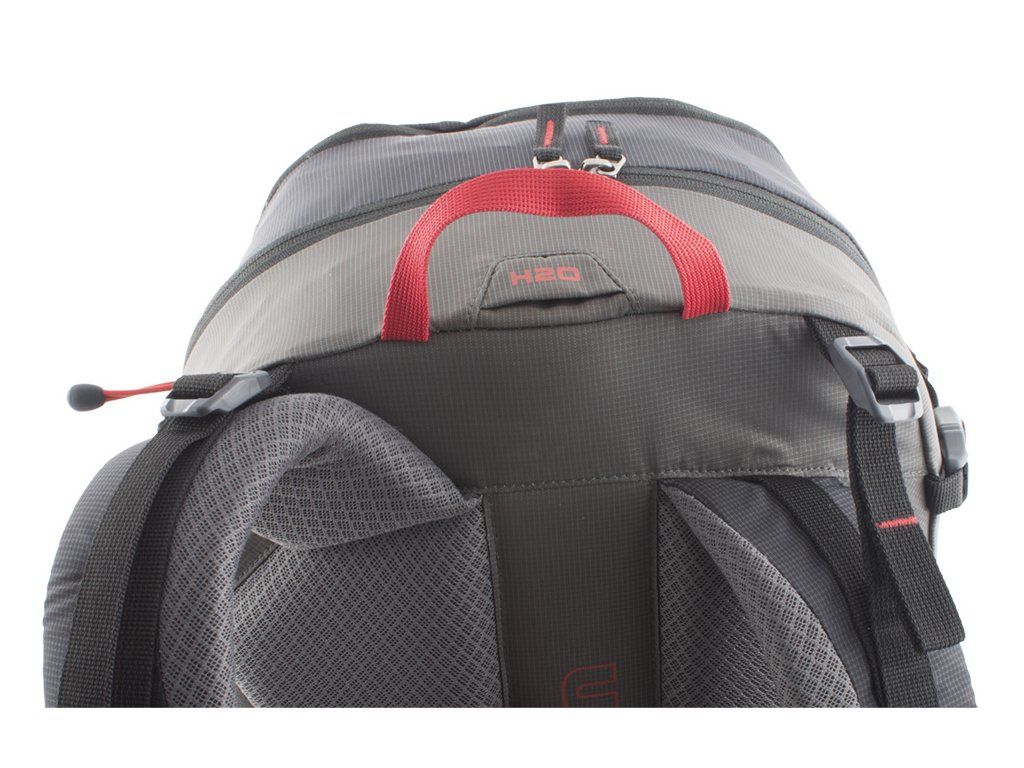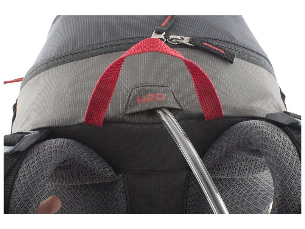 Záda batohu jsou vyztužena vyjímatelnou HDPE deskou s integrovanou duralovou výztuží, která pomáhá rozložit hmotnost přepravovaného nákladu na záda a eliminuje tlaky přepravovaných předmětů do zad.