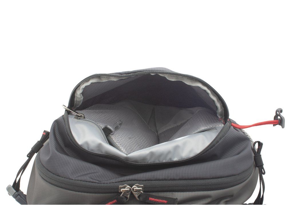 Prostorná čelní zipová kapsa vhodná k uložení rychle dostupného vybavení s vnitřní síťovanou zipovou kapsou na cennosti s karabinkou na klíče.