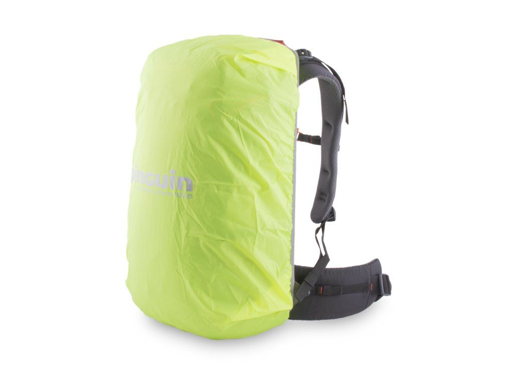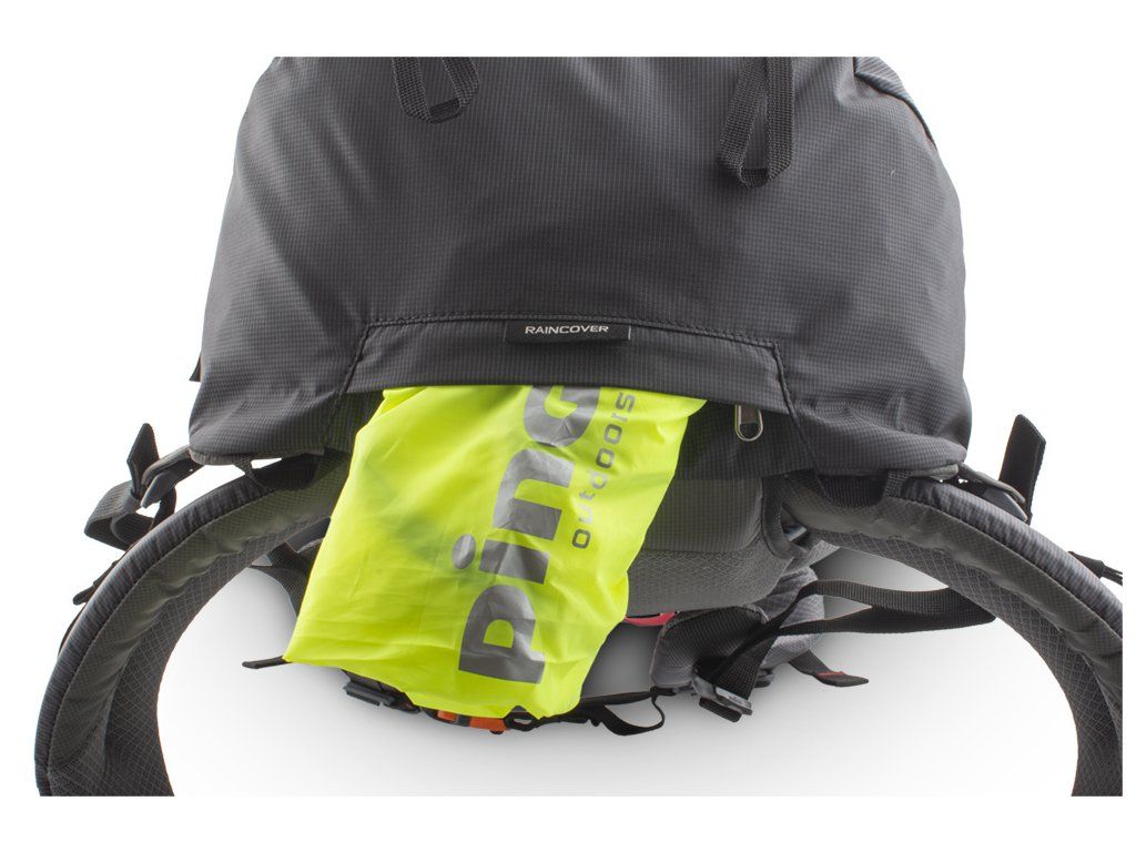 Výrazná pláštěnka v samostatné zipové kapse na dně batohu.