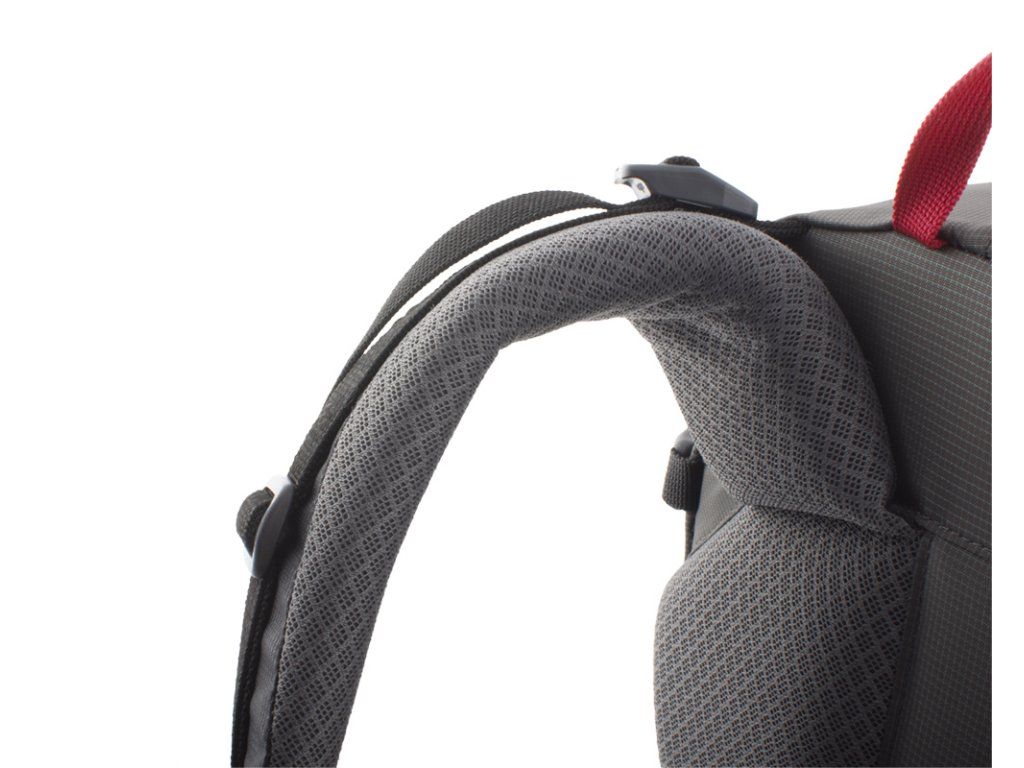 Pevné ramenní popruhy se zesíleným polstrováním pro zachování komfortu i při transportu těžkého nákladu.