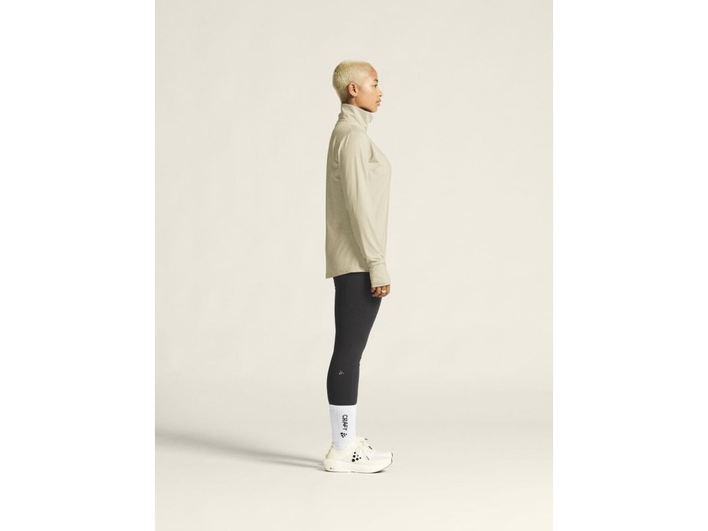CRAFT Flow HZ LS je příjemný a funkční halfzip, který je možné použít jako základní vrstvu stejně dobře jako druhou, případně svrchní vrstvu pro širokou škálu aktivit. Rolák kombinuje recyklovaný polyester s elastanem a má velmi jemný chloupek na povrchu pro příjemnější pocit. Střih je volnější než u standardního funkčního prádla a poskytuje tak optimální volnost pohybu.