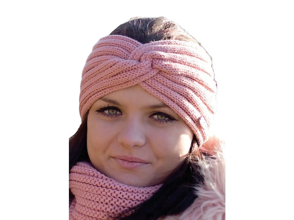 Design: Roztahovací pletená čelenka s propleteným uzlem.