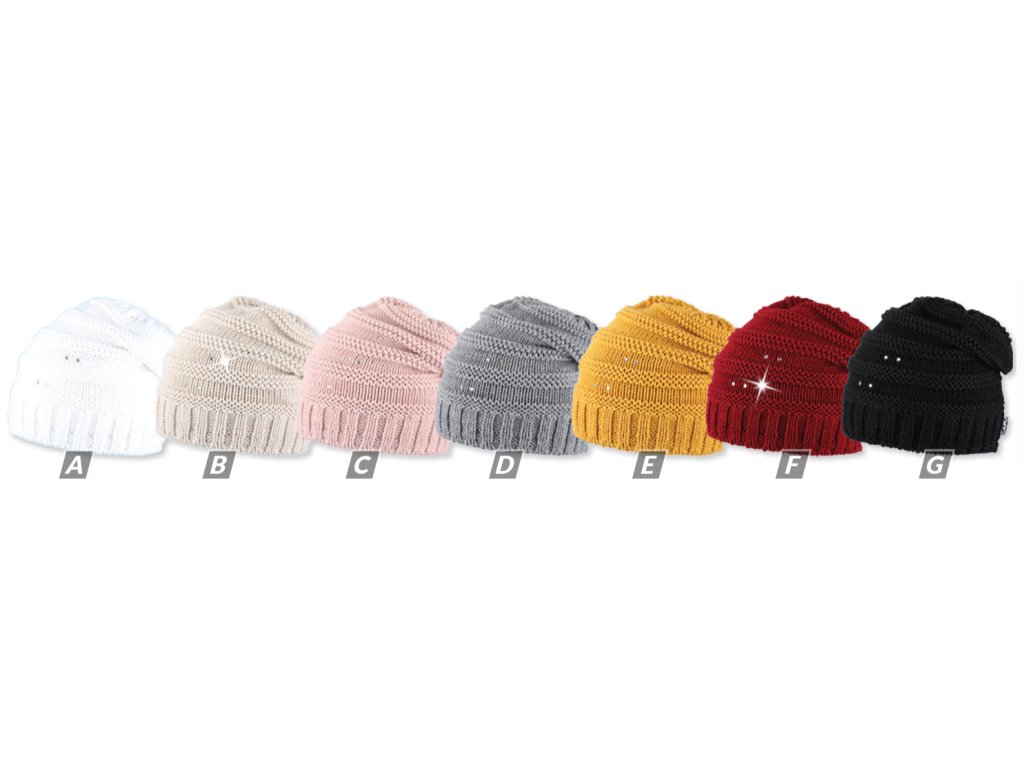 Dámská přepadlá pletená zimní čepice s kamínky SWAROVSKI. Vnitřní fleecová podšívka WINTERblock®.