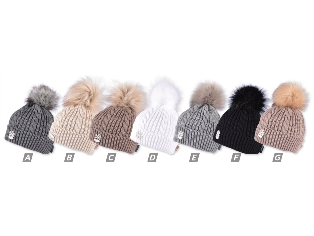 Capu 1831 dámská pletená zimní čepice s kožešinovou bambulí