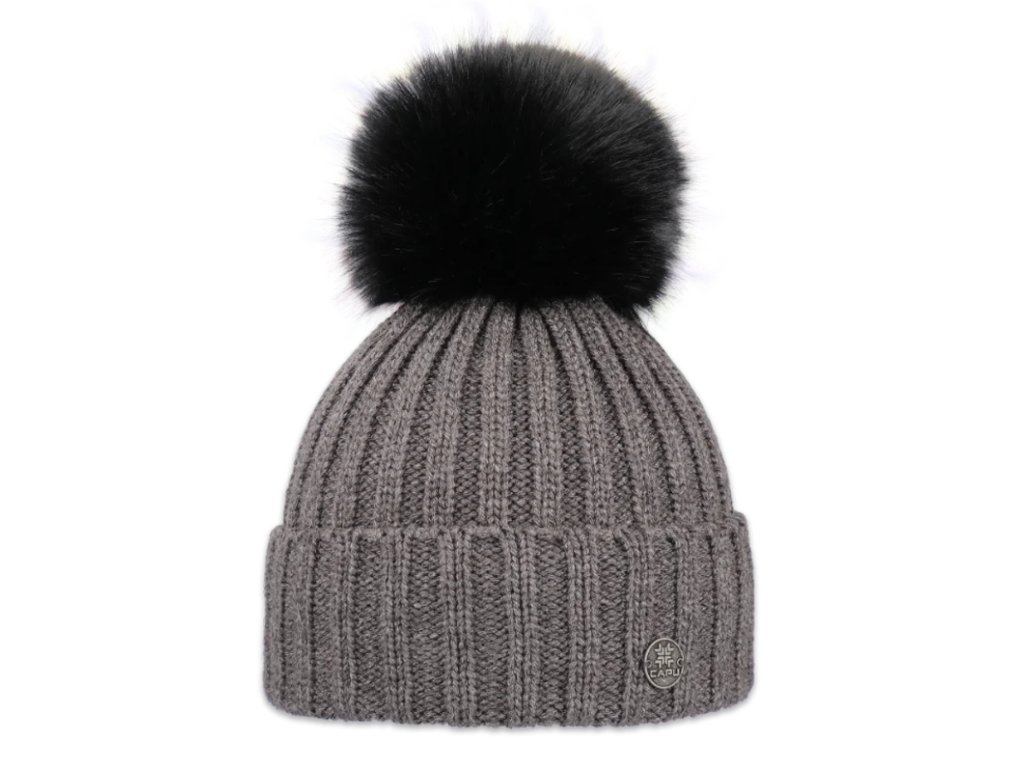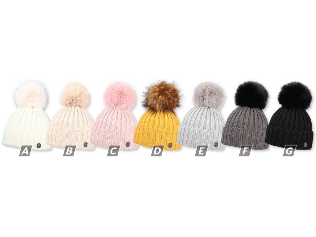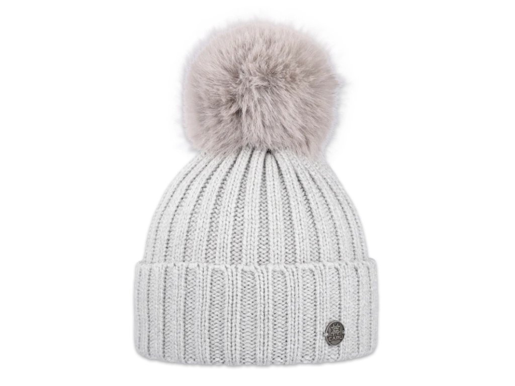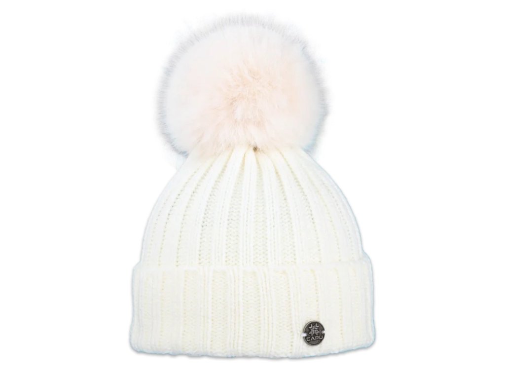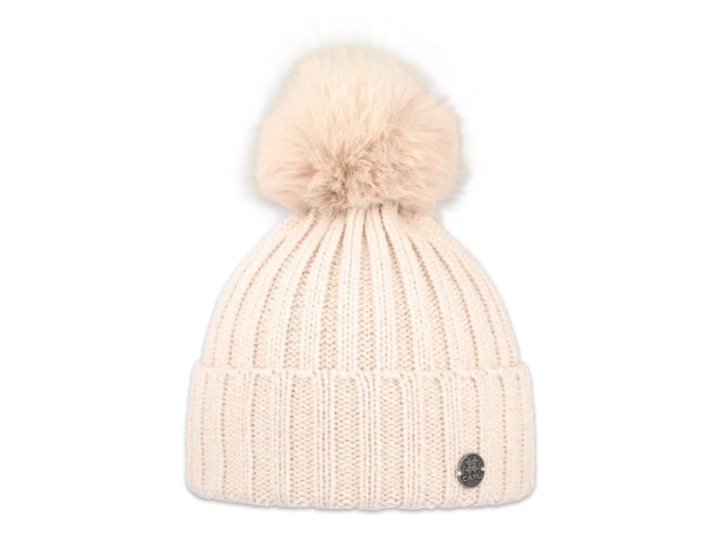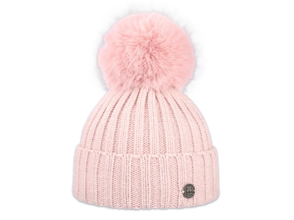 Capu 362 dámská pletená zimní čepice s kožešinovou bambulí