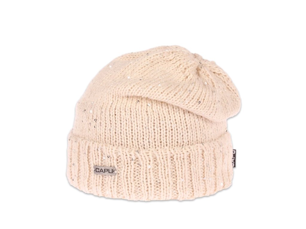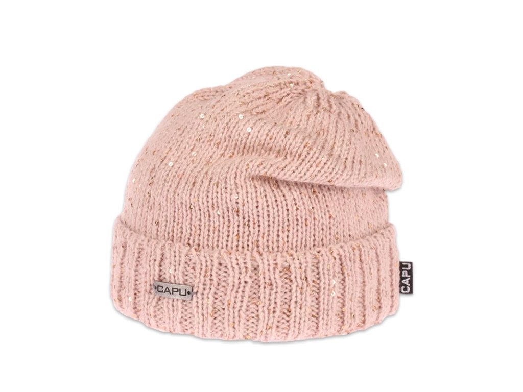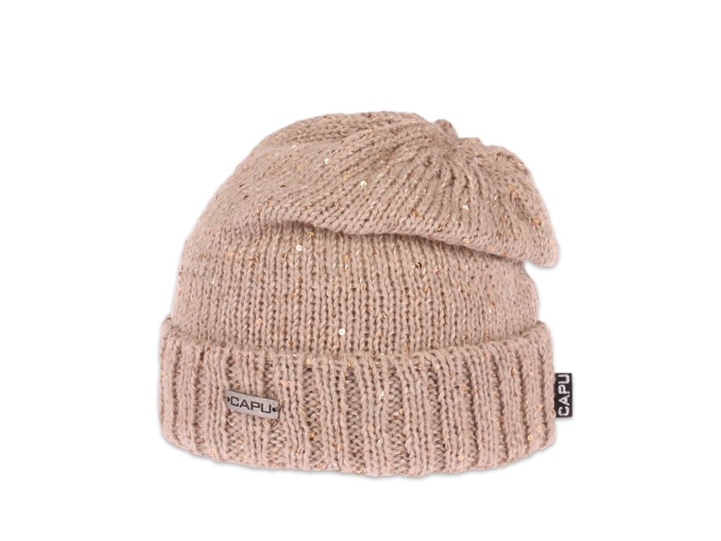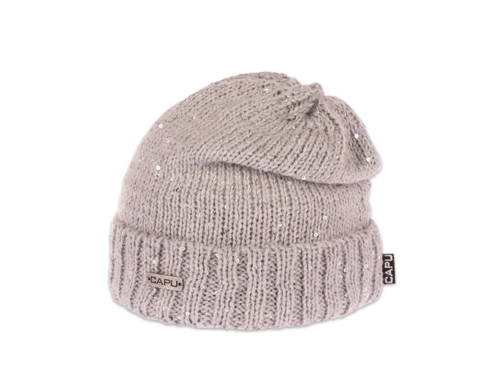 Dámská přepadlá pletená zimní čepice s třpytivými flitry. Vnitřní fleecová podšívka WINTERblock®.