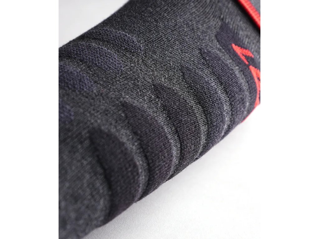 Díky zvýšené pružnosti je střih v oblasti lýtek ideální. Ponožky jsou tak dokonale vhodné i pro silnější lýtka a díky pohodlné manžetě nekloužou. Model 5.1 Toe Cap® má integrovaný chránič holeně a chrániče v oblasti špičky a paty. Díky bandáži ponožky na noze nekloužou.