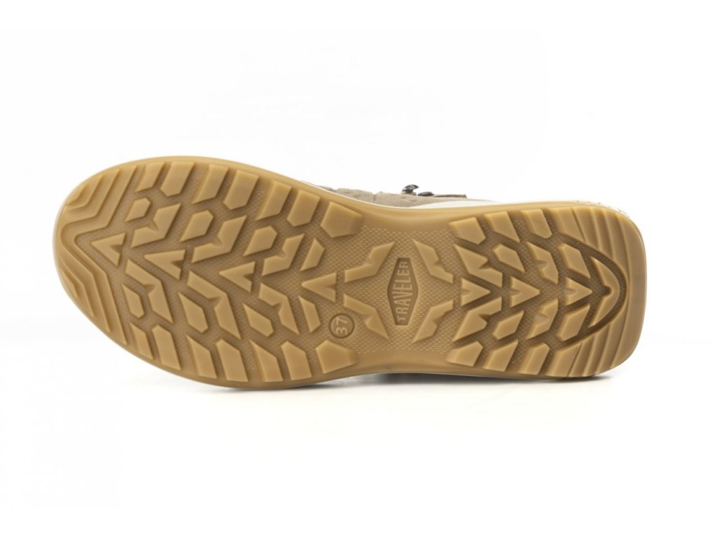 Všestranná bota, která se hodí na lehkou turistiku i do města. Svršek je vyroben z kvalitní broušené usně. Nový druh podešve Grisport Traveller má vnější "běhoun" vyroben z TPU (termoplastický polyuretan), který má hned několik zajímavých vlastností. Je velmi odolný proti oděru, neklouže, je lehký a skýtá měkké odpružení. Chůze v těchto botách je jako v bavlnce.