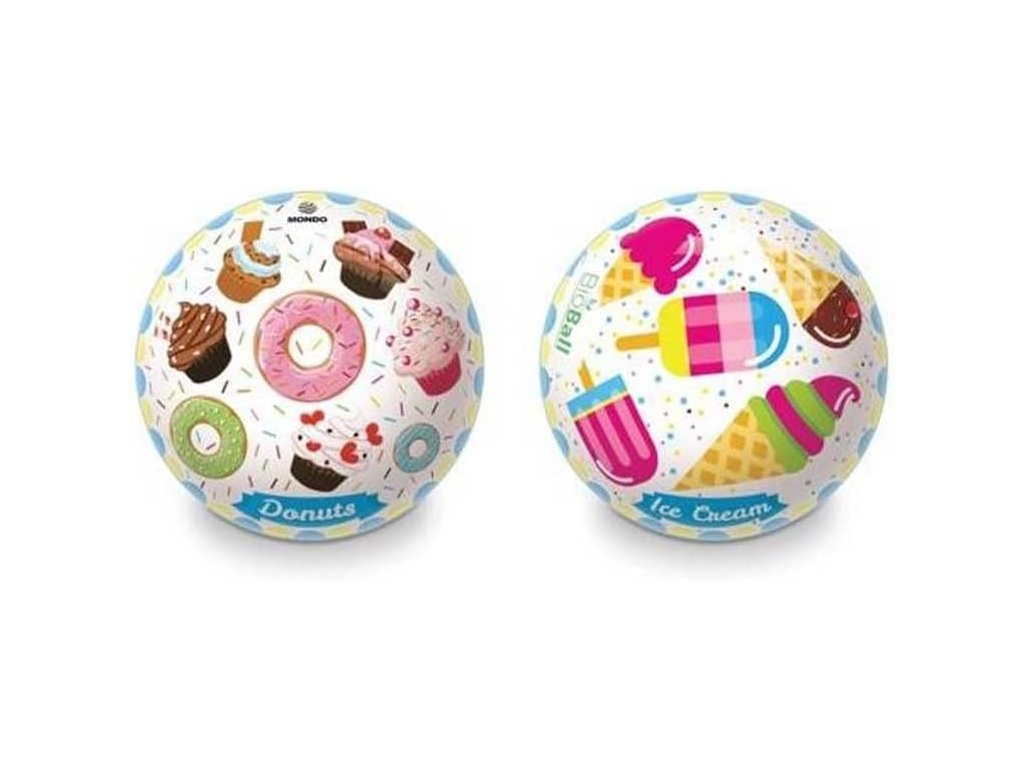 Potištěný míč plastový - potisk DONUT + ICE CREAM. Průměr míče je 230 mm, míč má certifikát bezpečné hračky. Jedná se o lehký potištěný míč s lakovaným povrchem, který zabraňuje odírání. Míč je vhodný i pro malé děti, protože je velmi lehký a zároveň odolný.