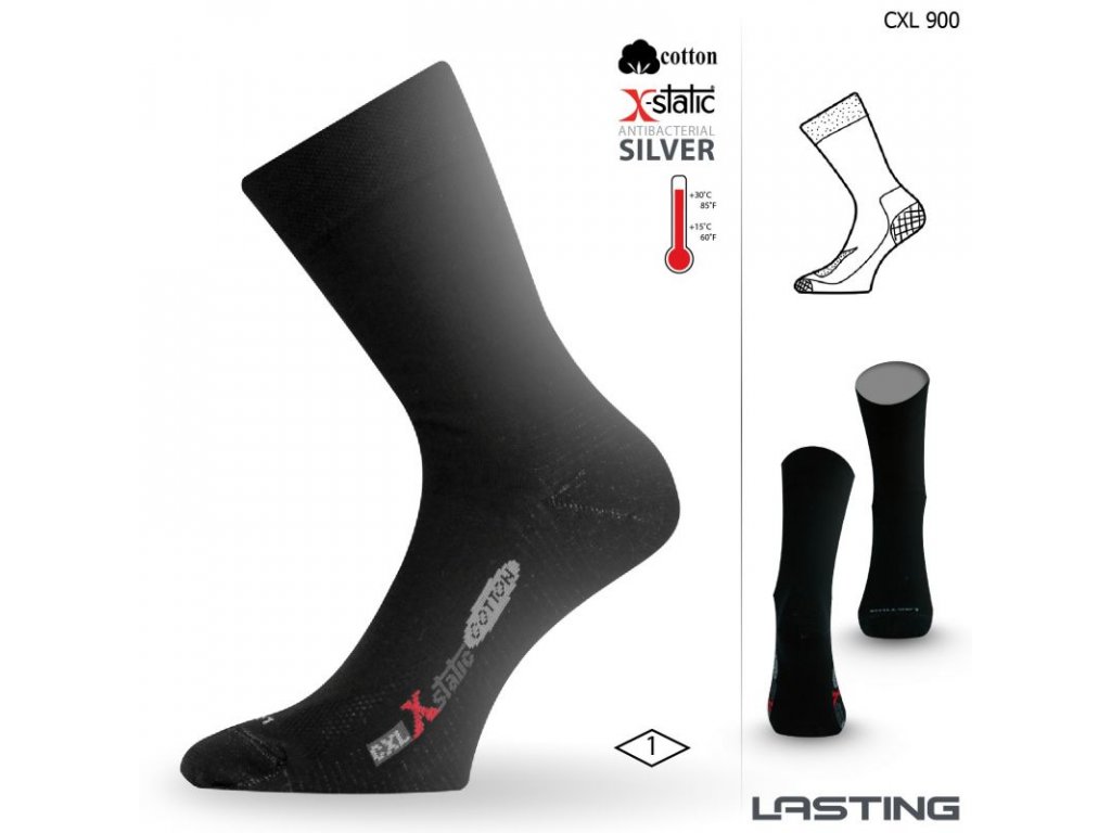 CXL je tenká sportovní trekingová ponožka z bavlny a speciální příze s obsahem stříbra, které zpomalují růst bakterií a plísní, potlačuje nepříjemné pachy a udržuje rovnováhu pokožku. Antibak teriální příze je rozmístěna ve špičce, chodidle a patě ponožky. V oblasti nártu jsou síťované zóny , které zajišťují cirkulaci vzduchu a transport vlhka.